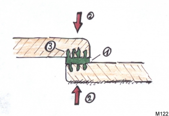 Tipp im Bauwesen: Visuelle Beurteilung von Möbeln: Wenn wir eine Verleimungen mit Weißleim vornehmen, entsteht zur Klebekraft auch eine Verdübelung des Leims in den Poren.